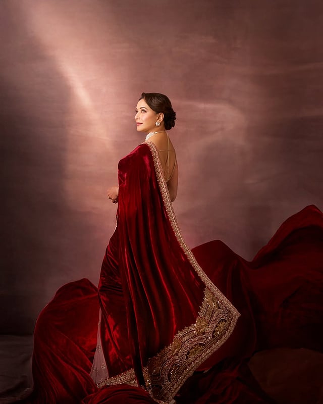 വെല്‍വെറ്റ് സാരിയില്‍ അതീവ സുന്ദരിയായി മാധുരി ദീക്ഷിത്