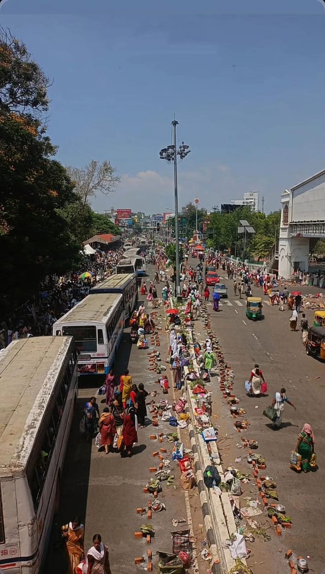 തുടർന്ന് ദേവിക്ക് പൊങ്കല സമർപ്പിച്ച ഭക്തലക്ഷങ്ങൾ മടങ്ങുകയായി. പായസം, വെള്ളനിവേദ്യം ഉൾപ്പെടെ ഒട്ടേറെ നിവേദ്യങ്ങളാണു ഭക്തർ സമർപ്പിച്ചത്. രാത്രി 7.45നാണ് കുത്തിയോട്ട ബാലന്മാരെ ചൂരൽ കുത്തുന്നത്. നാളെ രാത്രി ഒന്നിന് നടക്കുന്ന കുരുതി സമർപ്പണത്തോടെ പൊങ്കാല ഉത്സവം സമാപിക്കും.