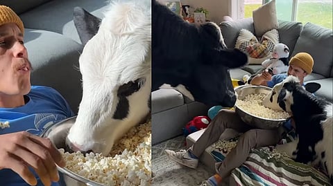 വളർത്തു മൃഗങ്ങളുമായി മനുഷ്യൻ ഇടപെഴകുന്ന നിരവധി വീഡിയോകൾ സോഷ്യൽ മീഡിയയിൽ പങ്കുവയ്ക്കറും അവ പ്രചരിക്കാറുണ്ട്(movie night with cows). അതിൽ നിന്നും വ്യത്യസ്തമായി ഒരു മനുഷ്യൻ പശുക്കളുമായി സ്വീകരണമുറിയിലിരുന്ന് സിനിമ ആസ്വദിക്കുന്ന ഒരു ദൃശ്യം സോഷ്യൽ മീഡിയയിൽ പങ്കുവയ്ക്കപ്പെട്ടു.