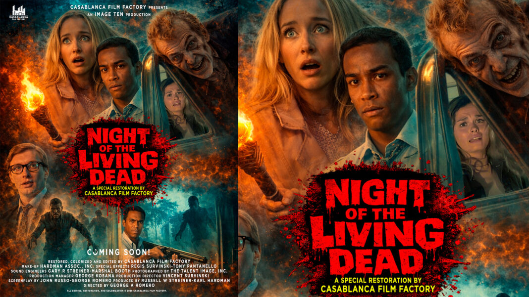 ക്ലാസിക് സിനിമകളുടെയും ഹൊറർ സിനിമകളുടെയും ആരാധകർ ആവേശത്തോടെ കാത്തിരുന്ന പ്രഖ്യാപനമാണ് കഴിഞ്ഞ ദിവസം കാസാബ്ലാങ്കാ ഫിലിം ഫാക്ടറിയിൽ നിന്നുമുണ്ടായത്. ലോകപ്രശസ്ത ഹോളിവുഡ് ഹൊറർ ചിത്രം ‘നൈറ്റ് ഓഫ് ദി ലിവിങ് ഡെഡ്’ (1968) പൂർണ്ണമായും കളറൈസ് ചെയ്ത് റീസ്റ്റോർ ചെയ്തിരിക്കുകയാണ് ഇന്ത്യൻ ഫിലിം പ്രൊഡക്ഷൻ കമ്പനിയായ കാസാബ്ലാങ്കാ ഫിലിം ഫാക്ടറി.