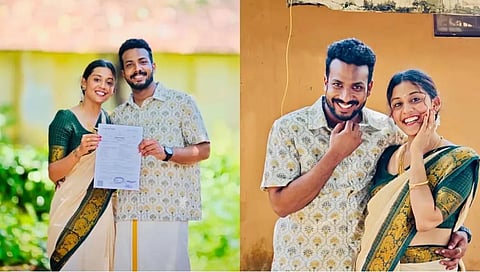 പച്ചയിൽ കസവ് പ്രിൻ്റോടുകൂടിയ കരയുള്ള ഓഫ് വൈറ്റ് സാരിയാണ് ആര്യയുടെ വേഷം. പച്ച നിറത്തിലുള്ള ബ്ലൗസാണ് ഇതിനൊപ്പം ധരിച്ചിരിക്കുന്നത്. ലളിതമായ ആഭരണങ്ങളും ആര്യ അണിഞ്ഞിട്ടുണ്ട്. മുണ്ടും ഫ്ളോറൽ പ്രിൻ്റുള്ള ഷർട്ടുമാണ് അഭിഷേകിന്റെ വേഷം. ഒട്ടേറെപ്പേർ നവദമ്പതികൾക്ക് ആശംസകൾ അറിയിച്ചു.