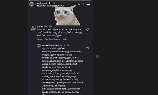 “എനിക്ക് തൊഴിലുണ്ടാക്കിത്തരാനുള്ള അനിയന്റെ താല്പര്യം സന്തോഷമുണ്ടാക്കുന്നു. പക്ഷേ എനിക്ക് നാട് വിട്ടു പോകണ്ട അനിയാ. എനിക്കിഷ്ടമുള്ള ജോലി ചെയ്ത് സന്തോഷമായിട്ട് ഞാന് ജീവിച്ചോളാം. പിന്നെ ഇടയ്ക്ക് അന്യരാജ്യങ്ങളില് പോവാനുള്ള അവസരവും എന്റെ തൊഴില് എനിക്ക് നല്കുന്നുണ്ട്. അതുകൊണ്ട് ഇവിടെ പെട്ടുപോയി എന്ന പേടി അനിയന് വേണ്ട. അനിയനും അനിയന്റെ തൊഴില് മേഖലയില് സന്തുഷ്ടനാണെന്ന് വിചാരിക്കുന്നു.” – ഗൗരി കുറിച്ചു.