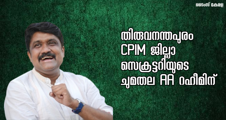 തിരുവനന്തപുരം: സിപിഐഎം തിരുവനന്തപുരം ജില്ലാ സെക്രട്ടറിയുടെ താല്ക്കാലിക ചുമതല എ.എ. റഹീം എംപിക്ക്. നിർദ്ദേശത്തിന് ജില്ലാ കമ്മിറ്റി അംഗീകാരം നൽകി. നിലവിലെ സെക്രട്ടറി വി. ജോയി വർക്കല മണ്ഡലത്തിൽ വീണ്ടും ജനവിധി തേടുന്നതിനാലാണ് സംഘടനാ ചുമതലകളിൽ മാറ്റം വരുത്തിയത്.(AA Rahim gets the position of Thiruvananthapuram CPIM district secretary)