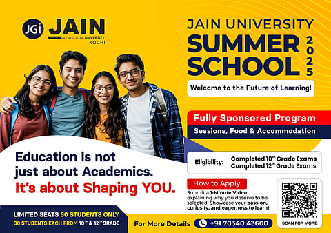 കൊച്ചി: പത്താംക്ലാസ്, പ്ലസ്ടു വിദ്യാര്ത്ഥികളില് നിന്ന് തെരഞ്ഞെടുക്കപ്പെടുന്ന 60 പേര്ക്ക് കൊച്ചി ജെയിന് യൂണിവേഴ്സിറ്റിയില് സൗജന്യ റസിഡന്ഷ്യല് സമ്മര് സ്കൂള് പ്രോഗ്രാം സംഘടിപ്പിക്കുന്നു. ഫ്യൂച്ചര് കേരള മിഷന്റെ ഭാഗമായി ഭാവി വിദ്യാഭ്യാസം പരിചയപ്പെടുത്തുക, വിദ്യാര്ത്ഥികളെ സര്വകലാശാല പഠനത്തിനായി സജ്ജമാക്കുക, നേതൃത്വപാടവശേഷി വികസിപ്പിക്കുക, യുവനേതൃത്വനിരയെ വാര്ത്തെടുക്കുക എന്നീ ലക്ഷ്യത്തോടെയാണ് സമ്മര് സ്കൂള് ആരംഭിക്കുന്നത്. പ്രതിഭകളായ വിദ്യാര്ത്ഥികള്ക്ക് വ്യത്യസ്തവും നവീനവുമായ പഠനാനുഭവം സമ്മാനിക്കുന്നതിനായി ടെക്നോളജി അവബോധം, നൂതനാശയം, ബജറ്റ് ആന്ഡ് റിസോഴ്സ് മാനേജ്മെന്റ്, ലൈഫ്സ്കില്സ്,വ്യക്തിത്വ വികസനം, ക്രൈം ഇന്വെസ്റ്റിഗേഷന്,ഡിസൈന് തിങ്കിങ് തുടങ്ങിയവ ആസ്പദമാക്കിയാണ് പ്രോഗ്രാം വിഭാവനം ചെയ്തിരിക്കുന്നത്.