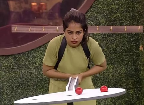 ബിഗ് ബോസ് ഹൗസിൽ ടിക്കറ്റ് ടു ഫിനാലെ ടാസ്കുകൾ നടക്കുകയാണ്. ബിബി ഹൗസിൽ തുലാഭാരം ടാസ്കായിരുന്നു കഴിഞ്ഞ ദിവസം നടന്നത്. ഒരു ബോർഡിൽ ബാലൻസ് ചെയ്ത് ചെറിയ പന്തുകൾ അതാത് ദ്വാരങ്ങളിലിടുക എന്നതായിരുന്നു ടാസ്ക്. ടിക്കറ്റ് ടു ഫിനാലെയിലെ മൂന്നാമത്തെ ടാസ്കാണ് ഇത്. മൂന്ന് ദ്വാരങ്ങളുള്ള ഒരു ബോർഡും അതിനോട് ചേർന്ന് ഒരു ഹാൻഡിലുമാണ് ടാസ്കിലെ പ്രധാന പ്രോപ്പർട്ടികൾ. ഈ ഹാൻഡിലിലൂടെ ചെറിയ പന്തുകൾ ഉരുട്ടി ഹാൻഡിൽ ബാലൻസ് ചെയ്ത് പന്തുകൾ പ്രതലത്തിലെത്തിക്കണം. എന്നിട്ട് ബോൾ പിറ്റിൽ കൃത്യമായി ഈ പന്തുകൾ ഇടുകയും വേണം. ഹാൻഡിൽ ബാറിൽ പിടിച്ച് മാത്രമേ ഇത് ബാലൻസ് ചെയ്യാവൂ. 40 സെക്കൻഡുകൾക്കുള്ളിൽ ടാസ്ക് പൂർത്തിയാക്കുന്ന മത്സരാർത്ഥിയാണ് വിജയി.