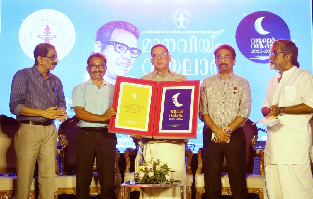 തിരുവനന്തപുരം: വയലാർ രാമവർമ്മയുടെ സ്മരണാർത്ഥം വയലാർ രാമവർമ്മ മെമ്മോറിയൽ ട്രസ്റ്റ് സംഘടിപ്പിക്കുന്ന ‘വയലാർ വർഷം’ ആഘോഷങ്ങൾക്ക് തുടക്കമിട്ട് വയലാർ ഗാനസന്ധ്യ പരമ്പരയ്ക്ക് മാനവീയം വീഥിയിൽ തിരിതെളിഞ്ഞു (Vayalar Rama Varma Memorial Trust). ഫെബ്രുവരി 11 ബുധനാഴ്ച വൈകുന്നേരം 6:30-ന് നടന്ന ചടങ്ങിൽ വയലാർ വർഷം സംഘാടക സമിതി വർക്കിംഗ് പ്രസിഡന്റ് ശ്രീ. പ്രഭാവർമ്മ ഉദ്ഘാടനകർമ്മം നിർവഹിച്ചു. ചടങ്ങിൽ വയലാർ വർഷത്തിന്റെ ഔദ്യോഗിക ലോഗോ പ്രകാശനവും നടന്നു.
