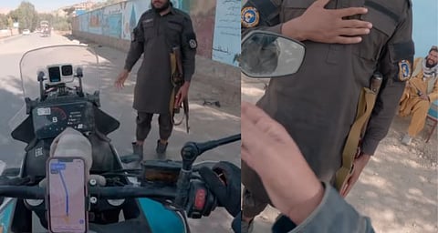 കാബൂൾ: ഇന്ത്യൻ വ്ലോഗറും മോട്ടോർ സൈക്ലിസ്റ്റുമായ യുവാവിന് അഫ്ഗാനിസ്ഥാനിൽ വെച്ച് താലിബാൻ സൈനികന്റെ അപ്രതീക്ഷിതവും ഊഷ്മളവുമായ സ്വീകരണം ലഭിക്കുന്ന ദൃശ്യങ്ങൾ സാമൂഹ്യ മാധ്യമങ്ങളിൽ വൈറലാകുന്നു. റൈഡർ ഗൗരവ് ശർമ്മയാണ് തൻ്റെ ഹെൽമെറ്റ് ക്യാമറയിൽ പതിഞ്ഞ ഈ അനുഭവം ഇൻസ്റ്റാഗ്രാമിൽ പങ്കുവെച്ചത്.