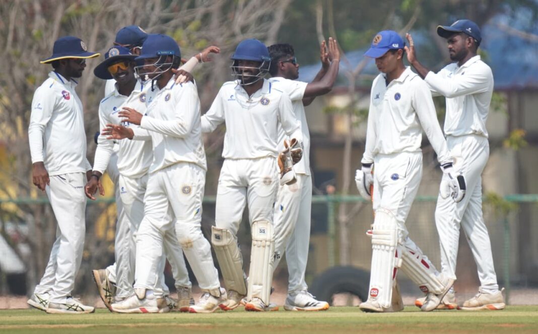 തിരുവനന്തപുരം: 23 വയസ്സിൽ താഴെയുള്ളവർക്കായുള്ള സി.കെ. നായുഡു ട്രോഫിയിൽ ഝാർഖണ്ഡിന്റെ ആദ്യ ഇന്നിങ്സ് 274-ൽ ഒതുക്കി കേരളം. മറുപടി ബാറ്റിങ്ങിന് ഇറങ്ങിയ കേരളം ആദ്യ ദിവസം കളി നിർത്തുമ്പോൾ വിക്കറ്റ് പോകാതെ അഞ്ച് റൺസെന്ന നിലയിലാണ്. അഞ്ച് വിക്കറ്റ് വീഴ്ത്തിയ ജെ എസ് അനുരാജിൻ്റെ പ്രകടനമാണ് കേരളത്തിന് മുതൽക്കൂട്ടായത്. മറുവശത്ത് 171 റൺസെടുത്ത ഓപ്പണർ ശിഖർ മോഹനാണ് ഝാർഖണ്ഡ് ബാറ്റിങ് നിരയിൽ തിളങ്ങിയത്.