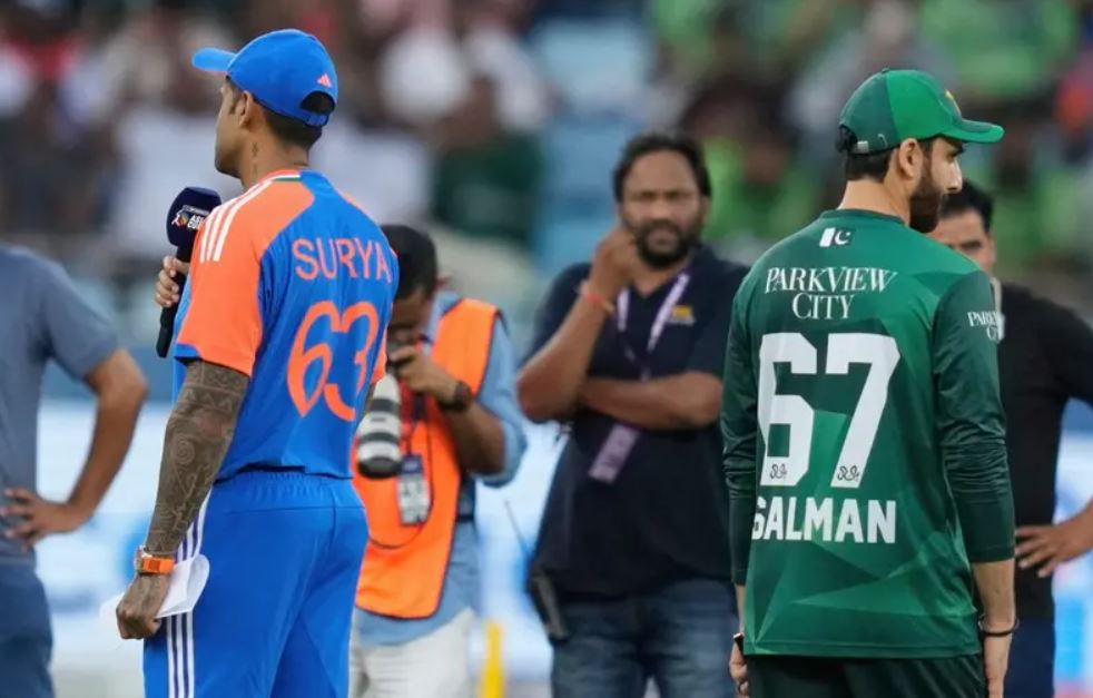 മത്സരത്തിന് മുന്നോടിയായി ഇന്ത്യൻ നായകൻ സൂര്യകുമാർ യാദവും പാക് നായകൻ സൽമാൻ അലി ആഗയും പരസ്പരം ഹസ്തദാനം നടത്തിയില്ല. പാക് താരങ്ങൾക്ക് കൈകൊടുക്കേണ്ടെന്ന ബിസിസിഐയുടെ കർക്കശമായ നിലപാട് ടീം പിന്തുടർന്നു.